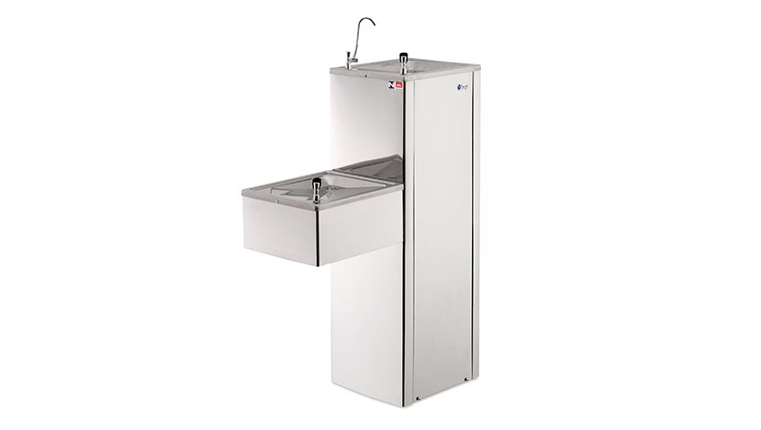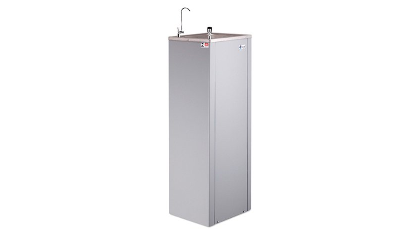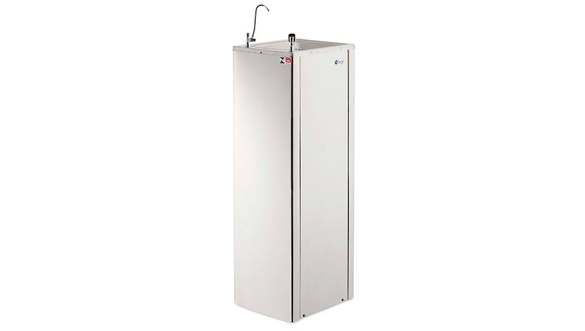 Bebedouro de pressão com filtro interno de tripla filtragem. Refrigeração por compressor nacional 1/12hp para a linha BRX 40 e 1/10hp para a linha BRX80, silencioso, de alto rendimento de água gelada e de baixo consumo de energia.