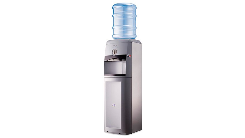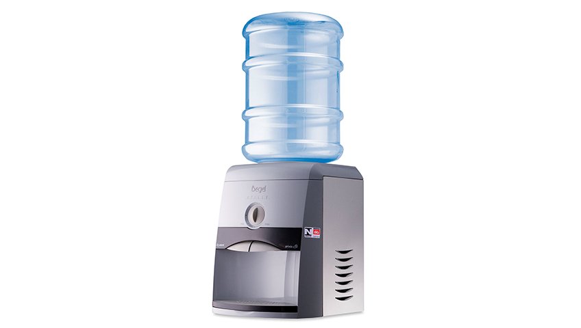 Bebedouro para garrafões de 5 à 20 litros com design moderno e linhas harmoniosas. Refrigeração por compressor nacional 1/12hp, silencioso, de alto rendimento de água gelada e de baixo consumo de energia.